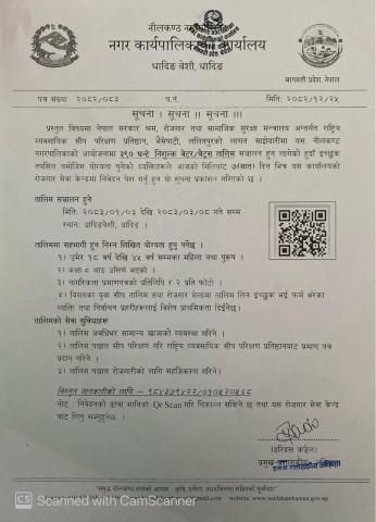 ३९० घण्टे निशुल्क तालिम संचालन सम्वन्धमा ।