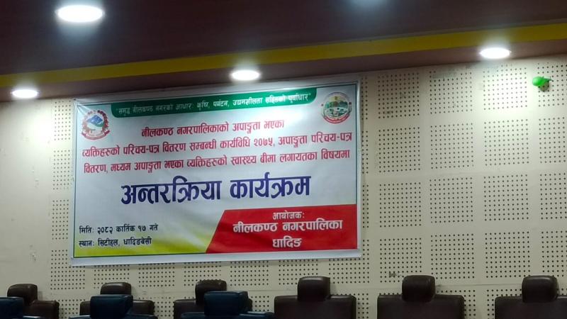 नीलकण्ठ नगरपालिकाको अपाङ्गता भएका व्यक्तिहरुको परिचय वितरण सम्वन्धी अन्तरक्रिया २०८२/०७/१७